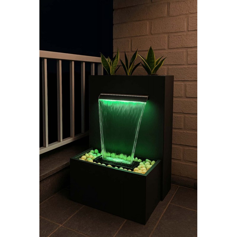 آبنما آبشاری پرتابل با طراحی مدرن و مینیمال، انتخابی ایده‌آل برای ایجاد آرامش و جلوه‌ای لوکس در فضاهای مختلف است. این محصول با صدای ملایم و یکنواخت جریان آب، حس طبیعت را به تراس، ویلا و حتی محیط‌های کاری منتقل می‌کند.